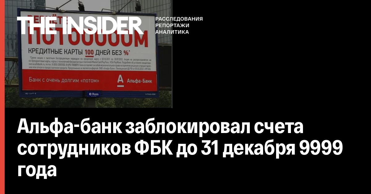 Альфа-банк заблокировал счета сотрудников ФБК до 31 декабря 9999 года
