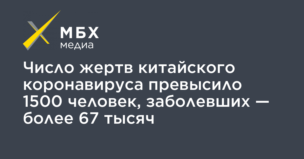 Число жертв китайского коронавируса превысило 1500 человек, заболевших — более 67 тысяч