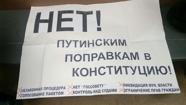 Участник акции стоял с плакатом «Нет путинским поправкам» возле ТЦ «Галерея». Полицейские, по словам задержанного, объяснили свои действия поступившим заявлением о том, что плакат Мусина якобы оскорбляет власть.