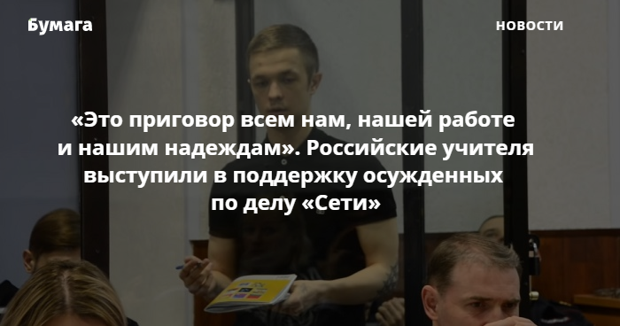 Учителя выступили в защиту фигурантов дела «Сети»