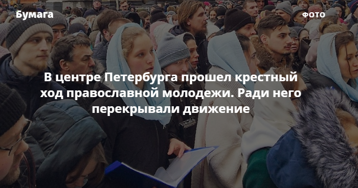 Утром 16 февраля в центре Петербурга прошел крестный ход, посвященный международному дню православной молодежи. Колонна шла по Невскому проспекту от храма Спаса Нерукотворного Образа на Конюшенной площади до Казанского собора.
