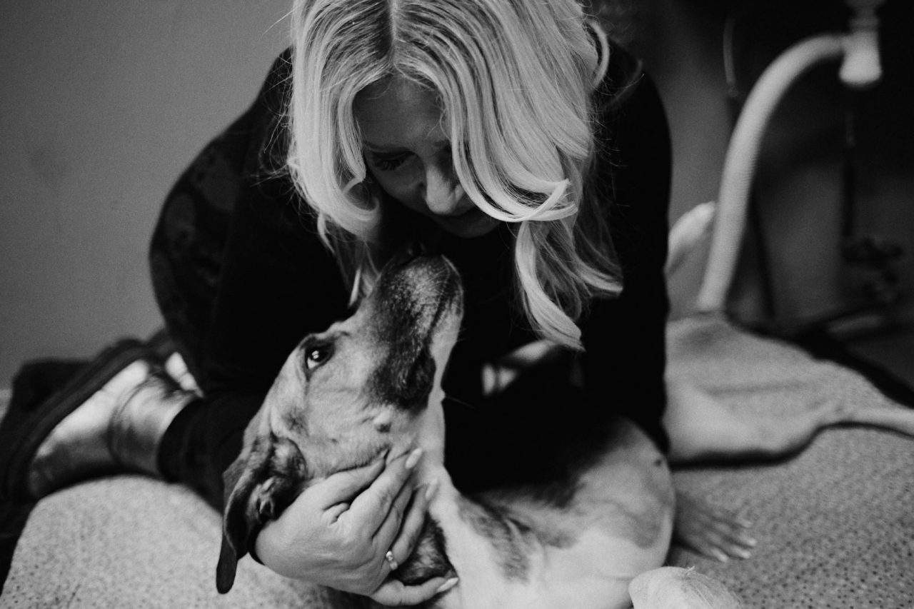 Любимица Татьяны трехногая собака Челси реабилитируется после операции в просторном одноместном боксе. Когда мы заходим внутрь, она поднимает с подстилки большую грустную морду и буквально бросается к Татьяне с объятиями, отказываясь «сидеть» и «идти на место».