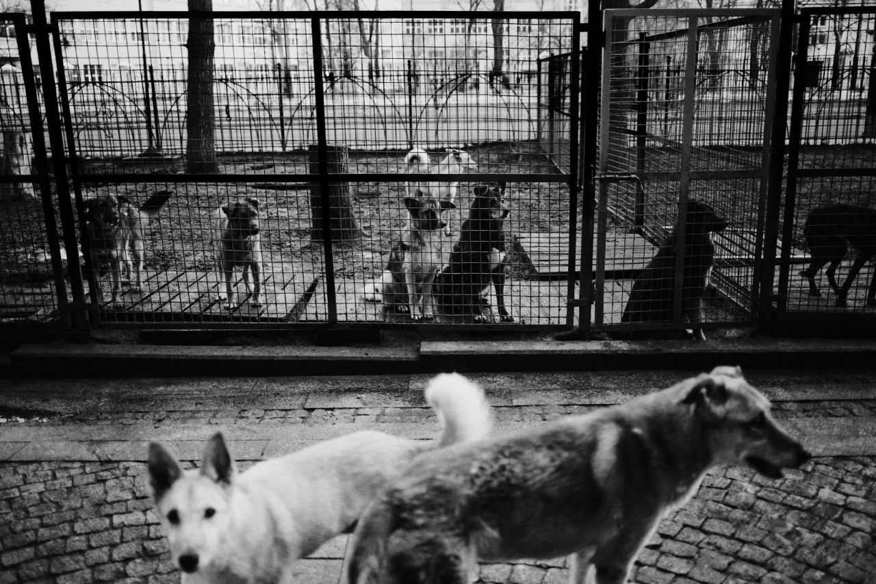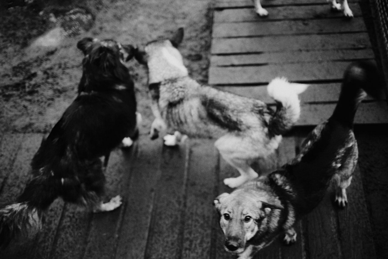 Днем в большом приюте на Большом Смоленском проспекте в Петербурге постоянный лай и гвалт. Животные переговариваются друг с другом, кто-то отправляется на процедуры, кто-то с нетерпением требует обед, кого-то выводят гулять.