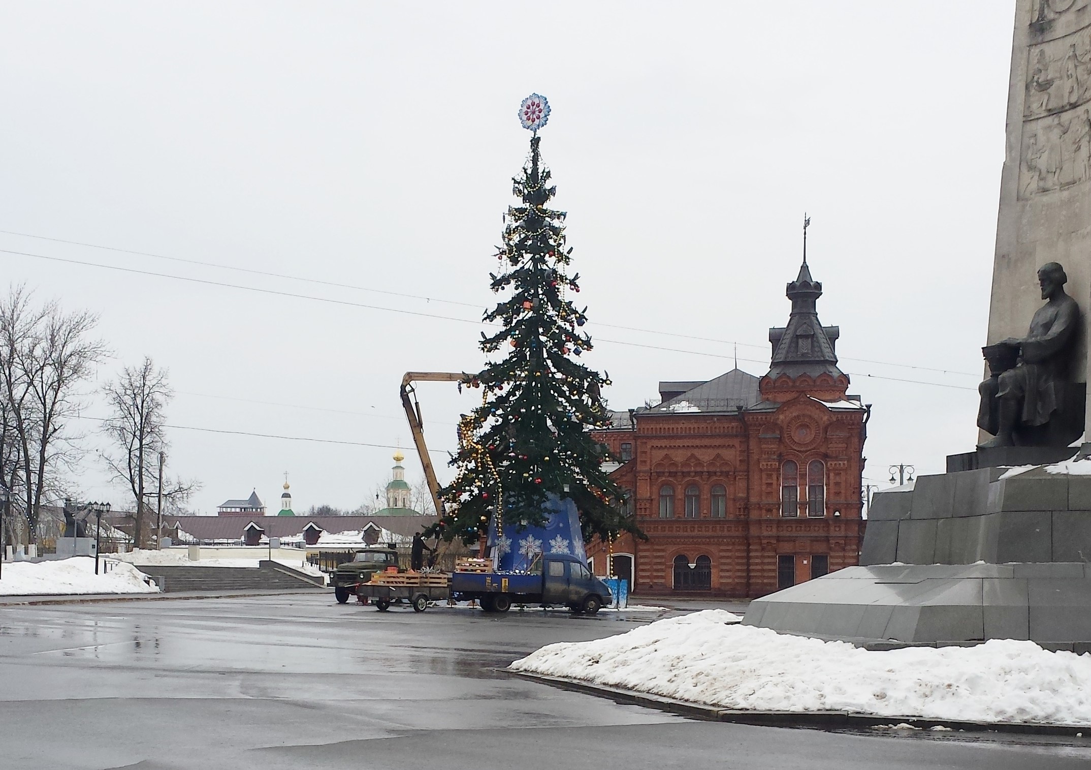 Во Владимире начали убирать новогоднюю ель на Соборной площади