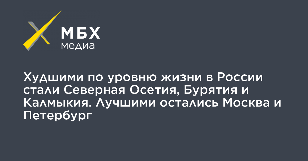 Худшими по уровню жизни в России стали Северная Осетия, Бурятия и Калмыкия. Лучшими остались Москва и Петербург