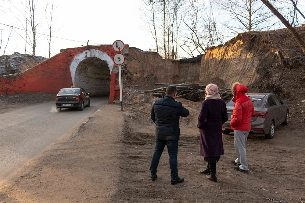 История эта начиналась по-гоголевски. Есть в Карабаново старинная кирпичная арка. Арка сохранилась еще с купеческих времен — раньше над ней пролегали железнодорожные пути, ведущие к текстильной мануфактуре, а сейчас под аркой находится автомобильный тоннель. Может, и не бог весть какой красы сооружение, но — «историческая вещь и культурное наследие». Больше ста лет эта арка, в районе улицы Чулкова, простояла — а 19 августа ее начали рушить. Местные заволновались: «Почему копают? Зачем?»