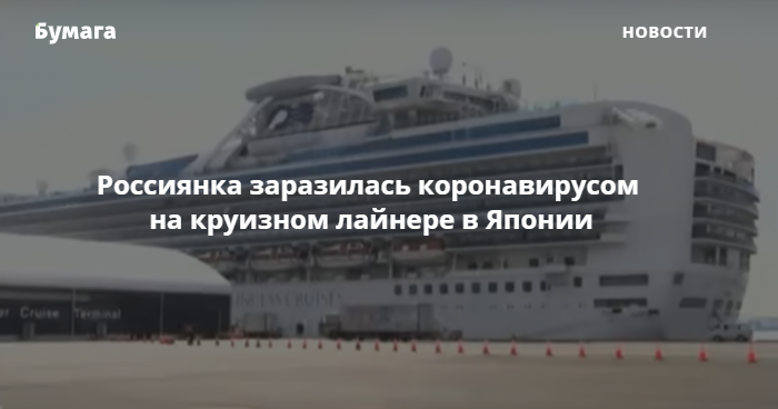 У россиянки, находящейся на карантинном лайнере в Японии, выявлен коронавирус. Об этом сообщает ТАСС со ссылкой на посольство.