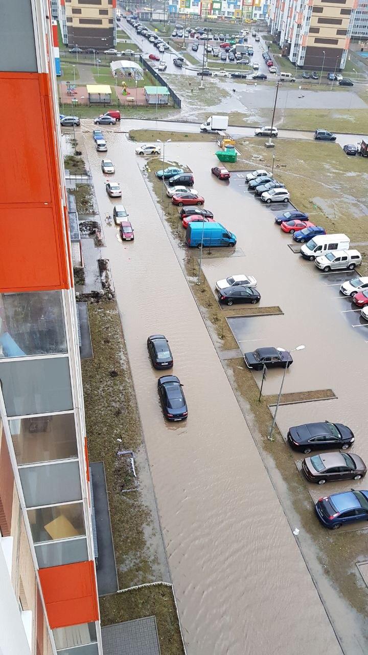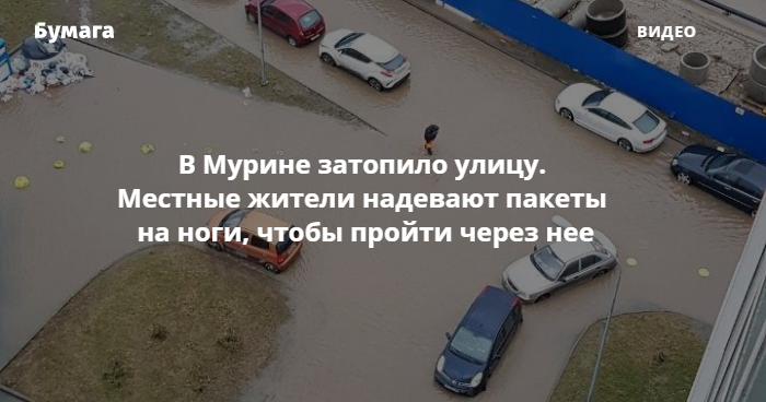 В Мурине затопило улицу. Местные жители надевают пакеты на ноги, чтобы пройти через нее