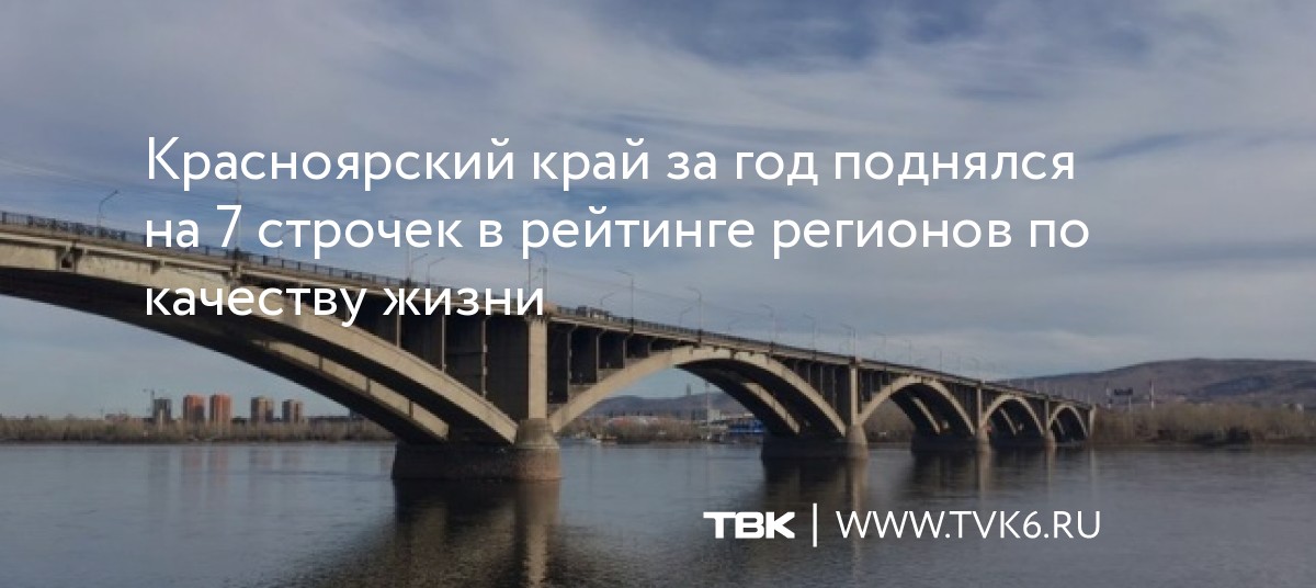 Красноярский край за год поднялся на 7 строчек в рейтинге регионов по качеству жизни