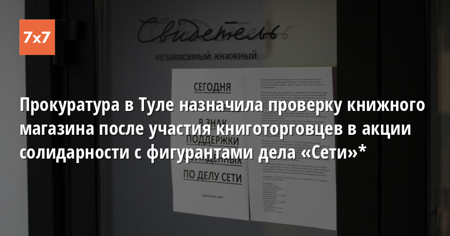 Прокуратура в Туле назначила проверку книжного магазина после участия книготорговцев в акции солидарности с фигурантами дела «Сети»*