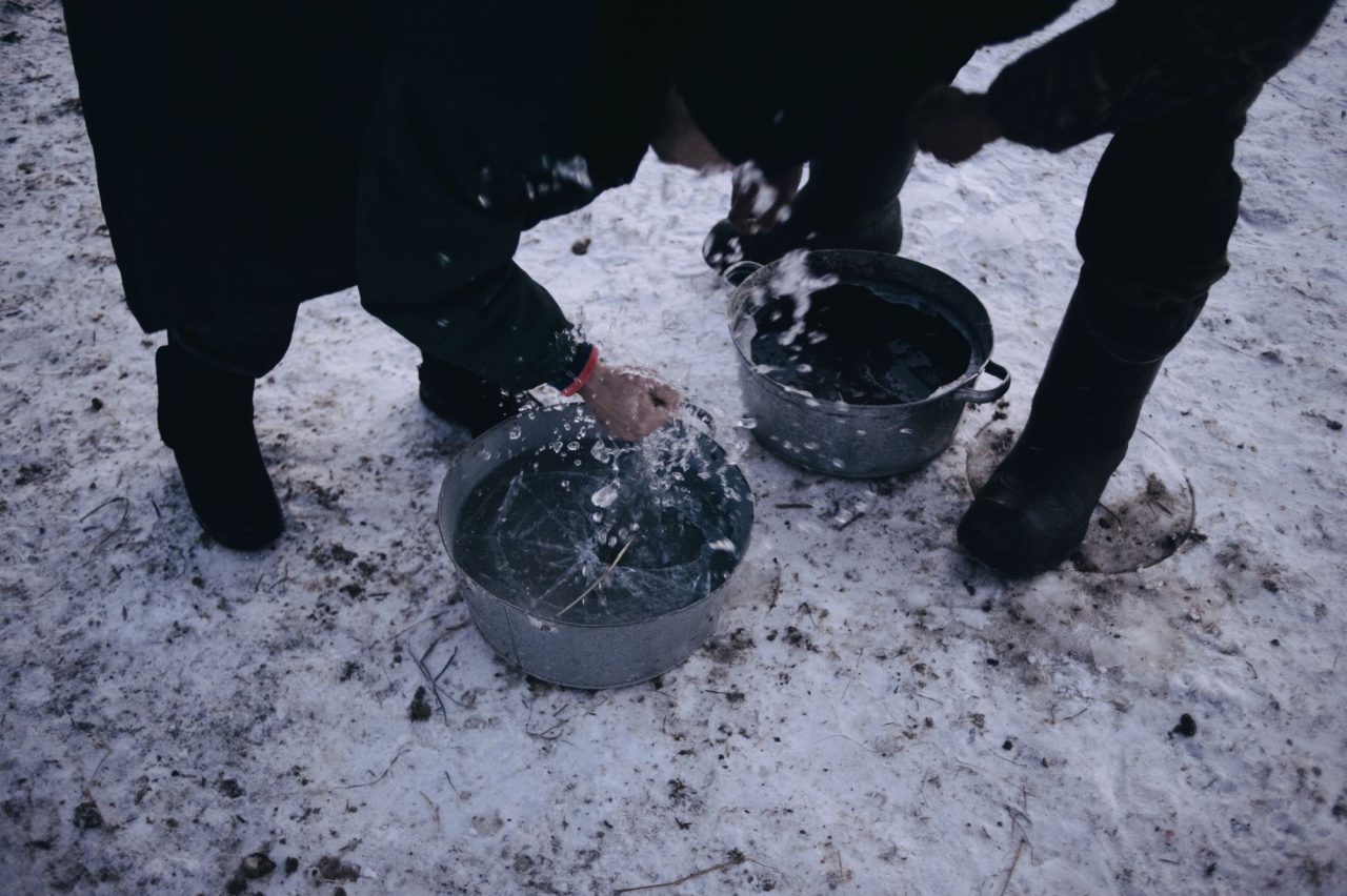 Подопечные интерната разбивают корочку льда, чтобы дать лошадям водыФото: Константин Чалабов для ТД «У меня был Костя, правда, старый конь был… — рассказывает Миша о жизни до интерната. — Костя его звали. Коричневый полностью, только на лбу звездочка была. Старый конь был. Он был совхозный, а я брал его как… на летний сезон. То есть весной брал. После зимнего застоя их надо прогонять, чтобы они размялись, иначе они не подпускают к себе».