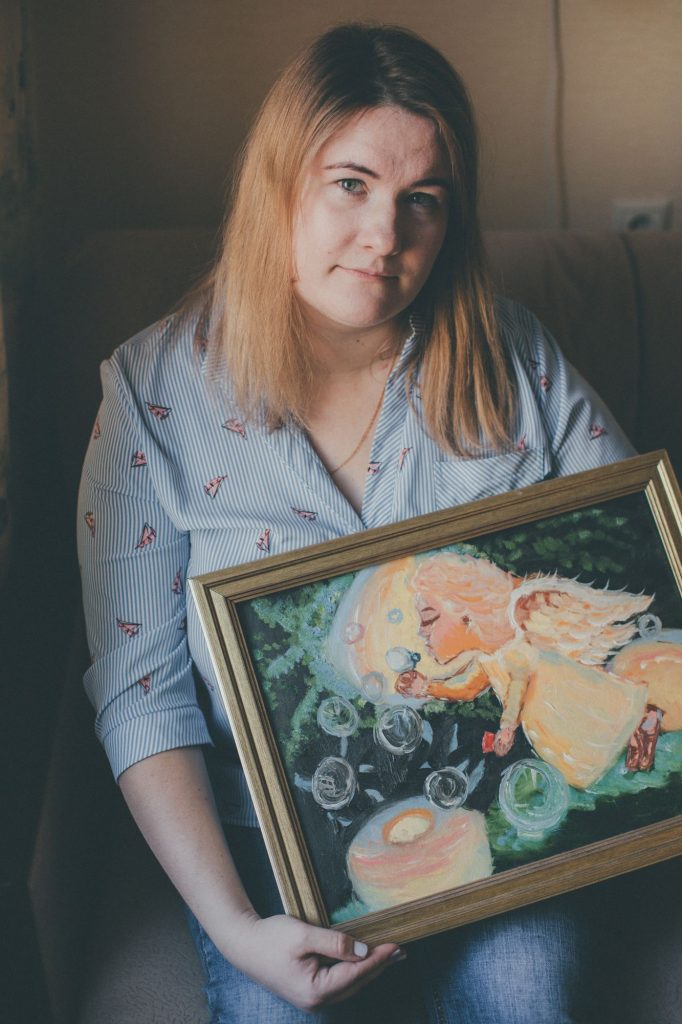 На комоде у Александры стоит картина с нежным рыжим ангелом, играющим с мыльными пузырями. Эту композицию маслом она нарисовала на занятии арт-терапией после потери ребенка во время беременности.