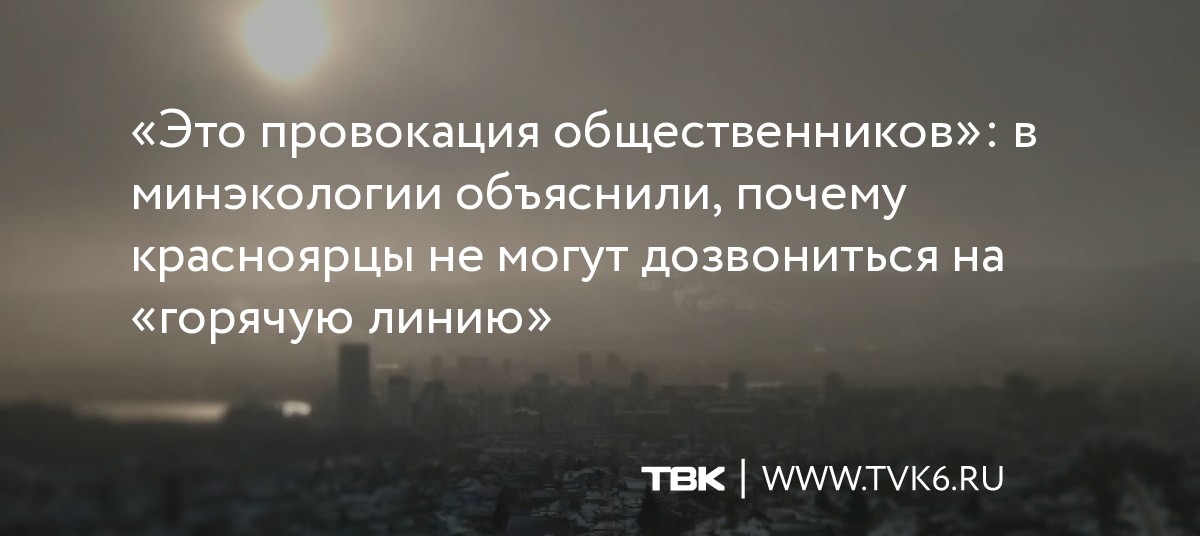 «Сбой с горячими линиями связан с тем, что со стороны общественников идет провокация. Телефонную линию нам обрушили те, кто звонит без конца. Не успевает специалист центра положить трубку, как тут же вновь раздается звонок. Причем, звонящие, по словам специалиста, начинают разговор с фразу: "Ну, вот, мы вам позвонили, что нужно говорить?". К этому призывают в соцсетях – пишут, что, мол, давайте звонить на эти номер министерства! Поэтому у нас линия и занята постоянно и те, кто действительно хочет сообщить о загрязнителях не может "пробиться". Мы можем пропустить важную информацию от жителей Красноярска, поэтому призываем в свою очередь перестать звонить просто "для порядка"», – пояснили в краевом министерстве экологии.