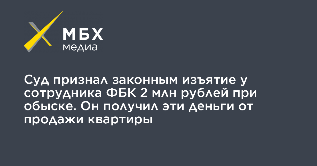 Басманный суд Москвы признал законным изъятие во время обыска у сотрудника Фонда борьбы с коррупцией Виталия Колесникова 2,3 млн рублей, которые он получил от продажи квартиры. Об этом Колесников рассказал «МБХ медиа».