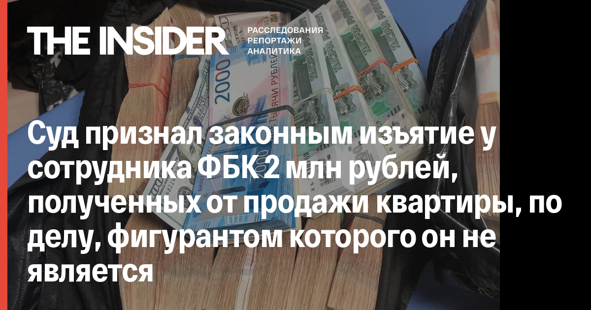 Суд признал законным изъятие у сотрудника ФБК 2 млн рублей, полученных от продажи квартиры, по делу, фигурантом которого он не является