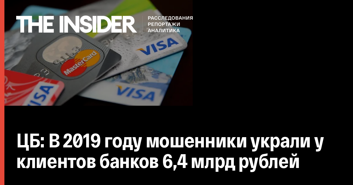 ЦБ: В 2019 году мошенники украли у клиентов банков 6,4 млрд рублей