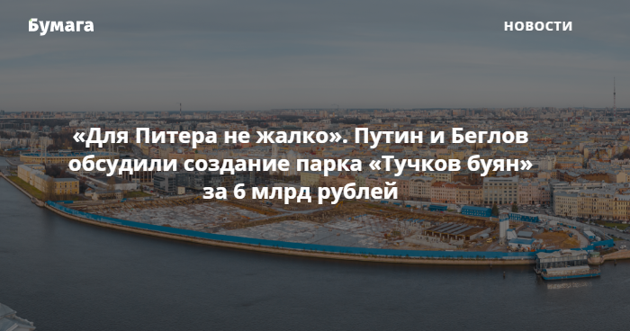 Президент Владимир Путин и губернатор Александр Беглов на рабочей встрече в Петербурге обсудили создание парка «Тучков буян» у Биржевого моста за 6 миллиардов рублей. Их диалог опубликовали на сайте Кремля.
