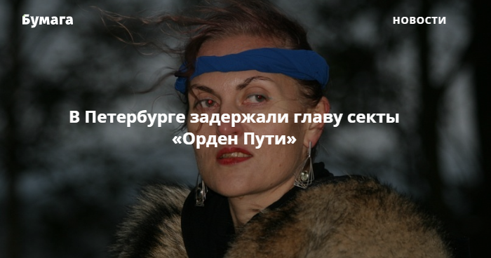 Полиция Петербурга задержала руководительницу оккультной организации «Орден Пути» Гайву Тихомирову. Об этом сообщает «Фонтанка» со ссылкой на пресс-службу МВД.