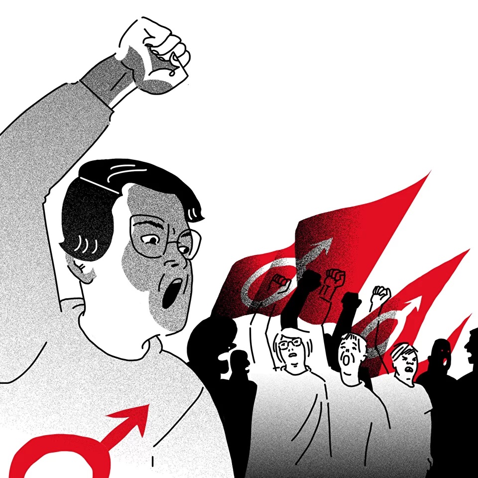 Разочаровавшись в девушках, Шилкин начал читать паблики «Мужского движения» — объединения, которое заявляет, что борется против «вопиющей дискриминации мужчин». Активисты «Мужского движения» считают, что феминизм — это «вредоносная и опасная идеология», которая очерняет и «ущемляет мужчин». Они выступают за «утверждение традиционных ролей мужчины и женщины» и считают, что женщины, например, не должны иметь права самостоятельно принимать решение об аборте. Хоть «Мужское движение» и утверждает, что не является женоненавистническим объединением, многие посты в его паблике направлены против женщин, а активисты часто употребляют в отношении них слова «шкура» и «дырка», называя поведение женщин по определению манипулятивным и нелогичным. Правда, как утверждает активист движения Павел Хохловский, «это не является общей позицией».