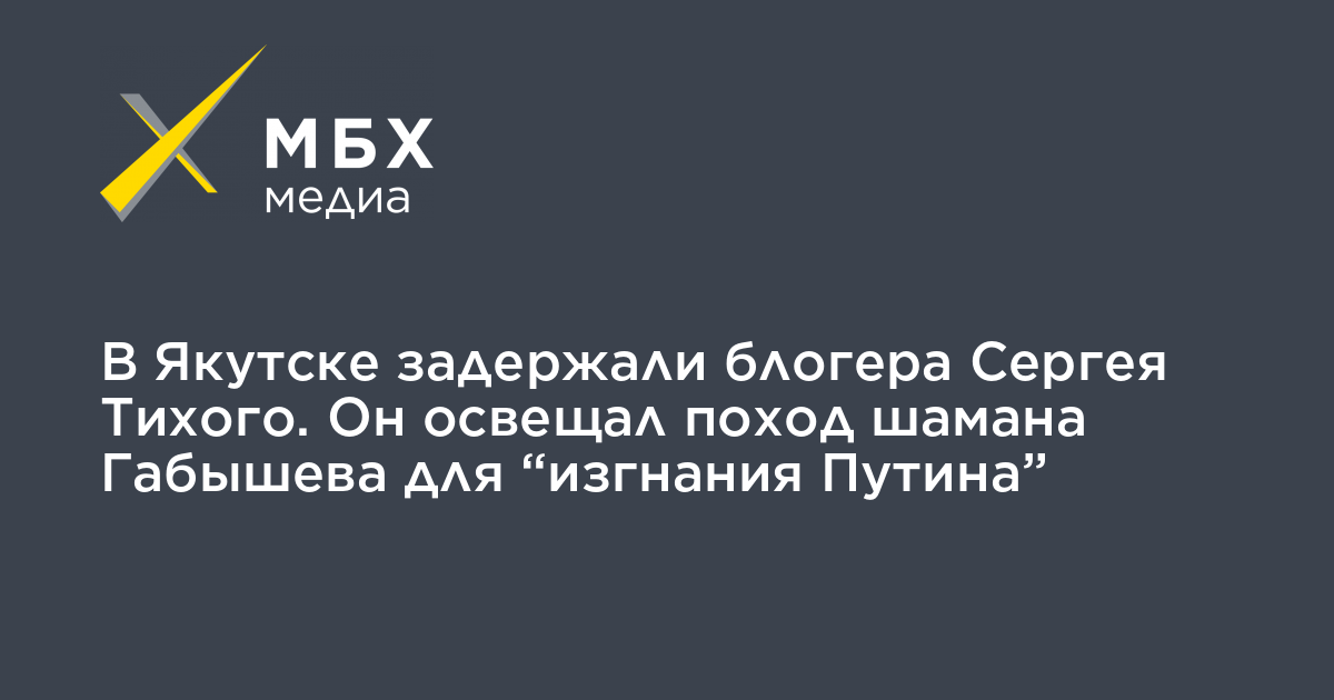 В Якутске полиция задержала блогера Сергея Тихого (Сергея Попова), который освещал поход шамана Александра Габышева для «изгания Путина». Об этом «МБХ медиа» рассказал координатор «Правозащиты Открытки» Алексей Прянишников.