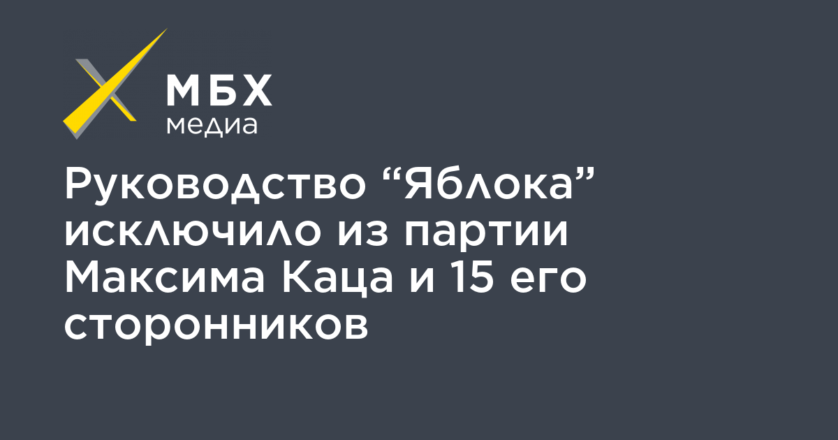 Руководство «Яблока» исключило из партии члена московского отделения организации Максима Каца и 15 его сторонников. Об этом «МБХ медиа» сообщил член федерального бюро «Яблока» Кирилл Гончаров.
