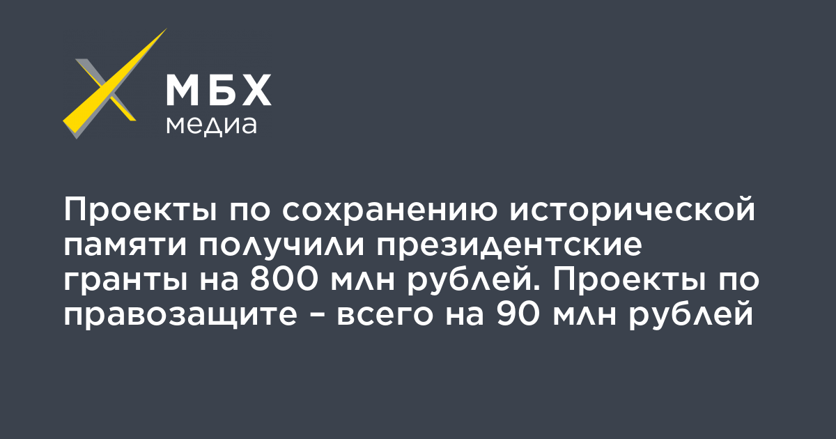 Проекты по сохранению исторической памяти получили почти 800 млн рублей в рамках первого в 2020 году конкурса Фонда президентских грантов, подсчитало «МБХ медиа».