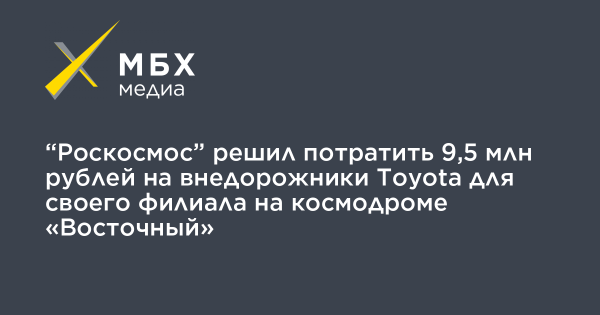 Госкорпорация «Роскосмос» выделила 9,5 млн рублей на покупку трех внедорожников Toyota для своего филиала на космодроме «Восточный». Соответствующий тендер «МБХ медиа» обнаружило на портале госзакупок.