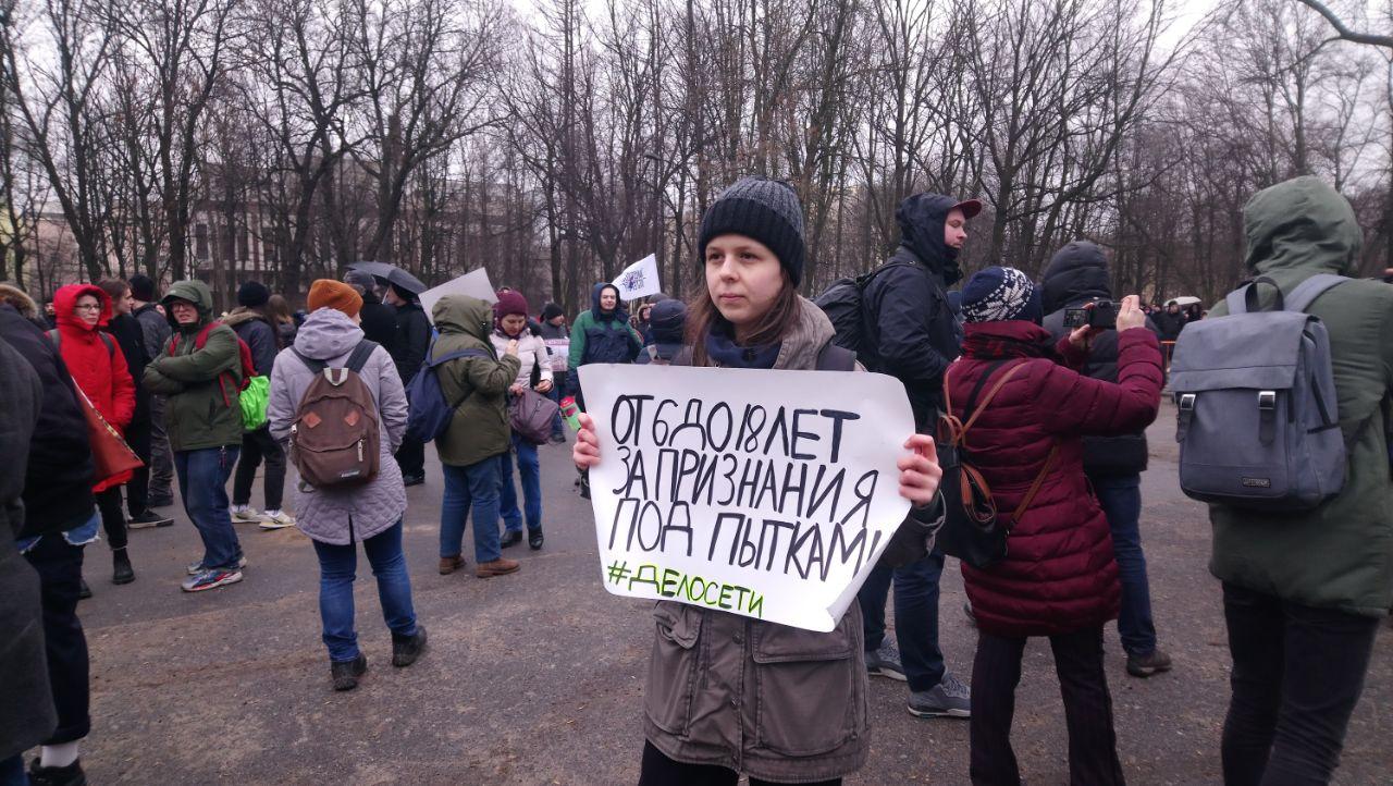 Петербург: активисты вышли на митинг в поддержку обвиняемых по делу "Сети"