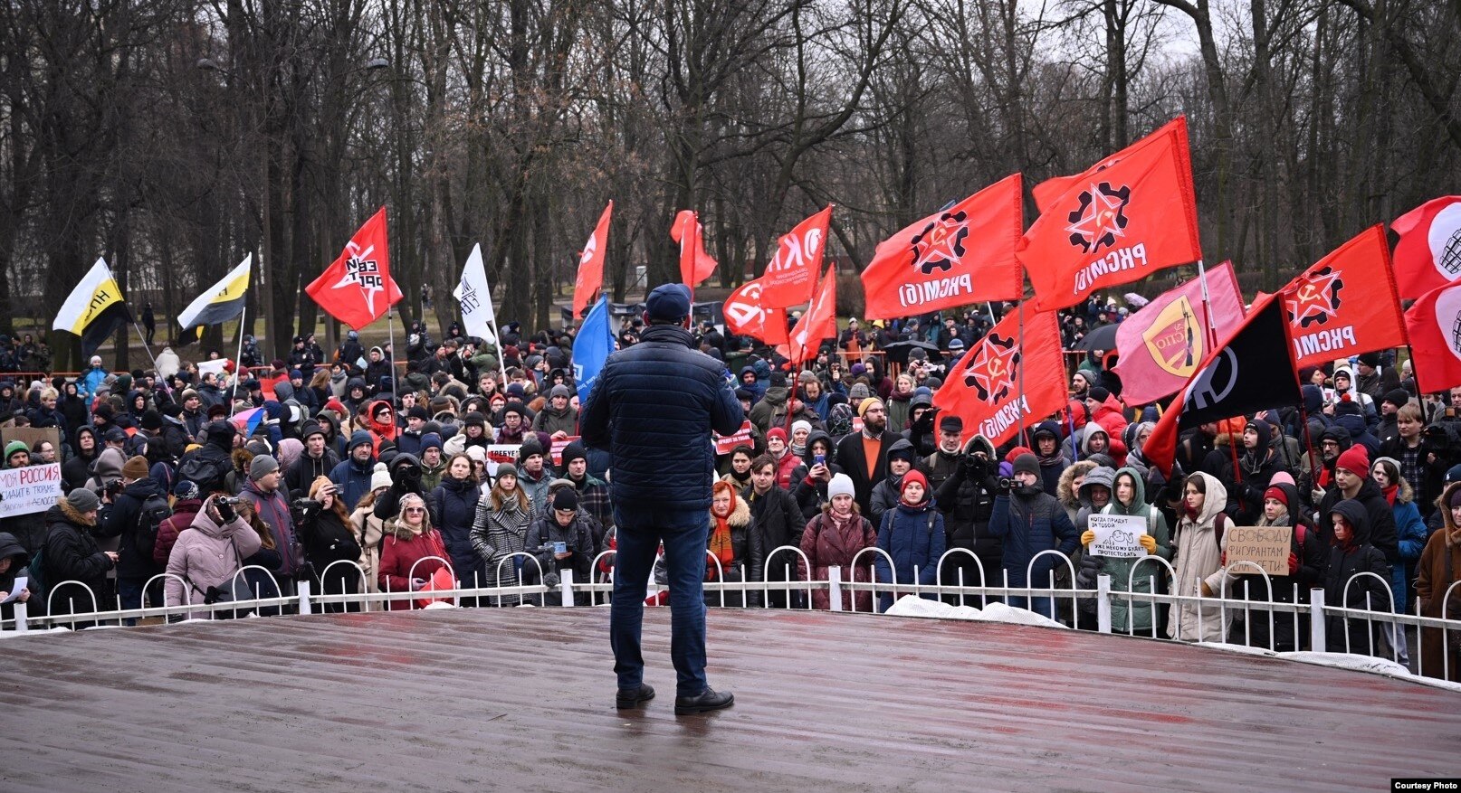 Среди выступающих были представили левых движений, выступил и отец обвиняемого Юлия Бояршинова - Николай Бояршинов. Он рассказал, что в суде так и не услышал "ничего такого, за что можно давать такие сроки". Бывшая член Общественной наблюдательной комиссии Екатерина Касаревская напомнила, что два года назад обвиняемый Виктор Филинков первый заявил о пытках со стороны ФСБ и показал наблюдателям следы от электрошокера.