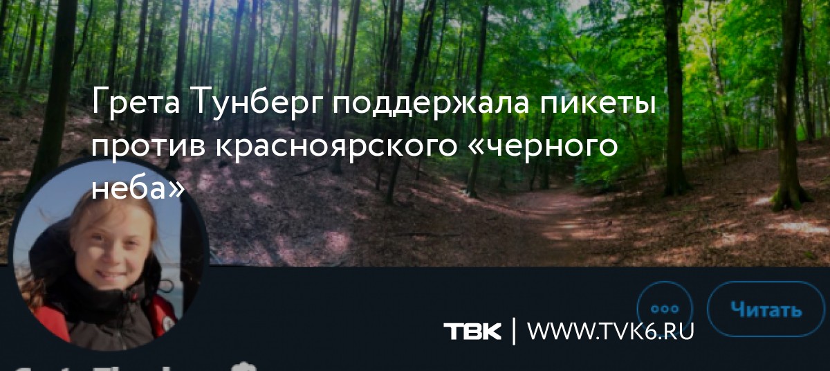 Грета Тунберг поделилась в своем Twitter с 4 млн подписчиков фотографиями одиночных пикетов в защиту красноярской экологии. Акции проходили в Москве, участники требовали «сделать небо вновь чистым».