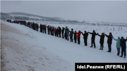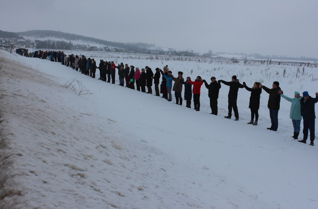 В минувшую субботу, 22 февраля, у горы-шихана Куштау состоялся очередной флешмоб под названием "Живая цепь". Сотни людей, приехавших из разных районов и городов Башкортостана, выстроились в цепочку у подножия горы, символизируя свою решимость защитить Куштау от угрожающей ей промышленной разработки.