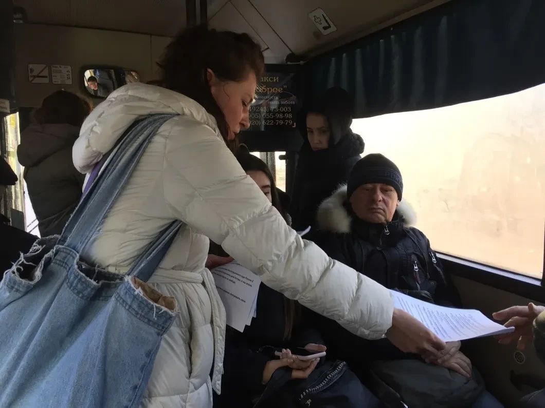 От станции до города друзья Кости добирались на автобусе. В городе с населением чуть более 17 тысяч человек организованная толпа сильно привлекала внимание. В общественном транспорте жители Покрова удивленно смотрели друг на друга и спрашивали, какой сегодня праздник. Когда активисты стали раздавать листовки с информацией про дело Котова, все оживились. Один мужчина, после прочтения, стал настаивать на том, что Котов участвовал в несанкционированных акциях, а значит, «посадили за дело». «Какая разница, санкционированная или несанкционированная», — хором отвечают на это немного рассерженные активисты.