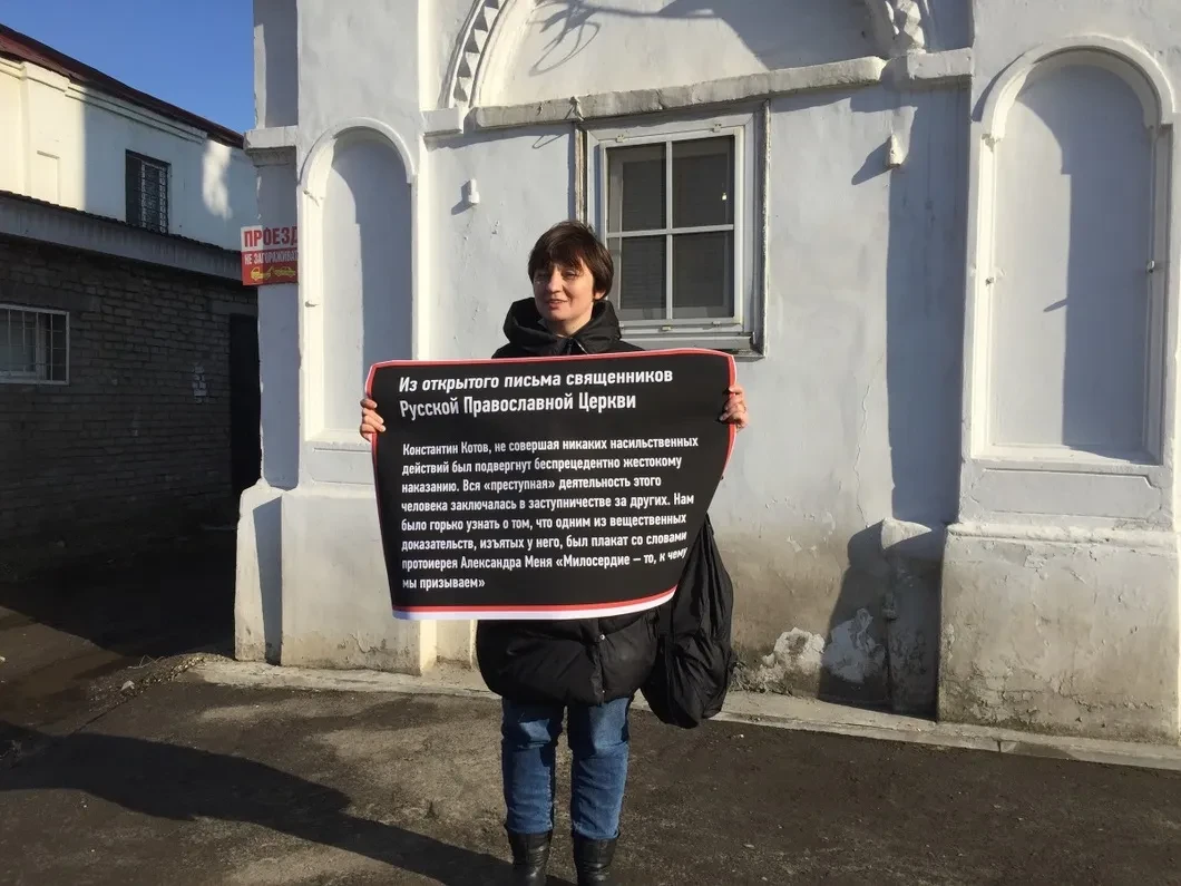 В городе друзья Котова выстроились в очередь для одиночных пикетов у Покровской церкви. На одном плакате дана выдержка из открытого письма священников в защиту заключенных по «московскому делу»: «Константин Котов, не совершая никаких насильственных действий ни в отношении представителей власти, ни других граждан, был подвергнут беспрецедентно жестокому наказанию. Вся «преступная» деятельность этого человека заключалась в заступничестве за других заключенных, при этом исключительно мирными средствами. Нам было горько узнать о том, что одним из вещественных доказательств, изъятых у него, был самодельный плакат со словами протоиерея Александра Меня «Милосердие – то, к чему мы призываем».