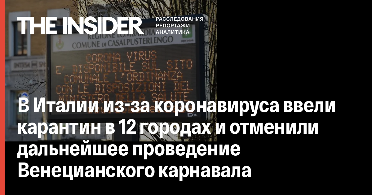 В Италии из-за коронавируса ввели карантин в 12 городах и отменили дальнейшее проведение Венецианского карнавала