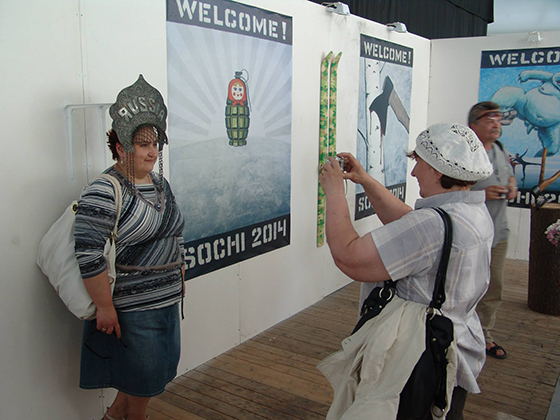© Александр Ложкин Welcome to Sochi-2014 Василия Слонова в Перми — Был еще такой замечательный эпизод вашей жизни под названием Украина. Вы — один из галеристов и кураторов, которые первыми начали продвигать украинское искусство, украинских художников. Они вас чем-то сильно поразили? Или это только бизнес?