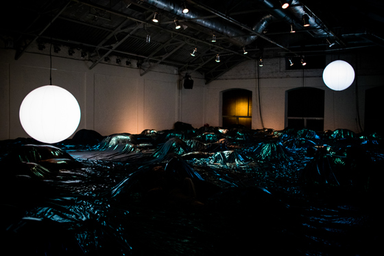 Говорящие подушки ждут гостей в полутемном зале, среди невысоких черных валунов. Этот ландшафт похож на природный лишь очертаниями: здесь нет ни колючей травы, ни влажного мха, ни назойливых насекомых, а вместо жесткой, холодной земли — мягкий синтетический ковер. Короче, safe space как оно есть. Посетителю нужно лечь у свободной кляксообразной подушки и произнести пароль «Я здесь».