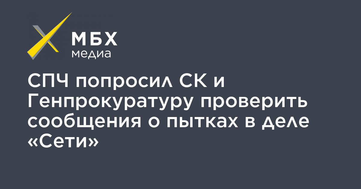 Совет по правам человека (СПЧ) при президенте направил запросы в СК и Генпрокуратуру в связи с проверками жалоб на пытки от фигурантов дела «Сети», сообщается на сайте совета.