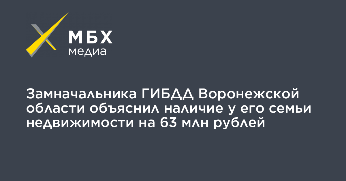 Замначальника ГИБДД Воронежской области объяснил наличие у его семьи недвижимости на 63 млн рублей