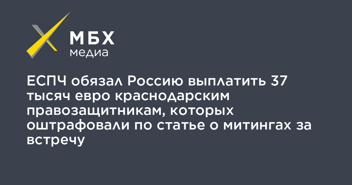 ЕСПЧ обязал Россию выплатить 37 тысяч евро краснодарским правозащитникам, которых оштрафовали по статье о митингах за встречу
