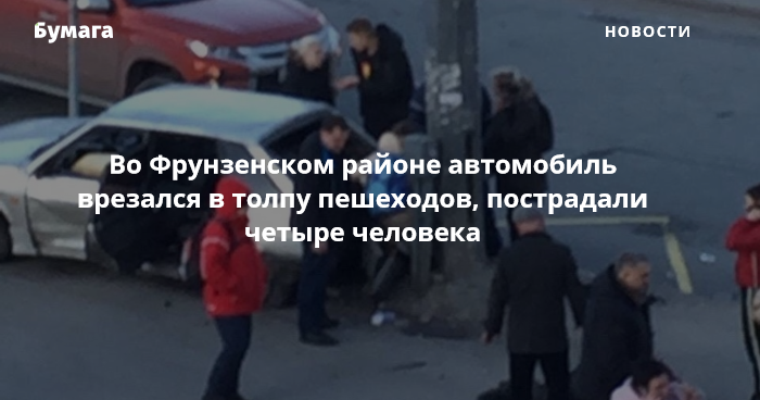 Вечером 25 февраля на пересечении Дунайского проспекта и Купчинской улицы автомобиль в результате столкновения с другой машиной въехал в толпу пешеходов на тротуаре. Об этом сообщает отдел пропаганды ГИБДД по городу.