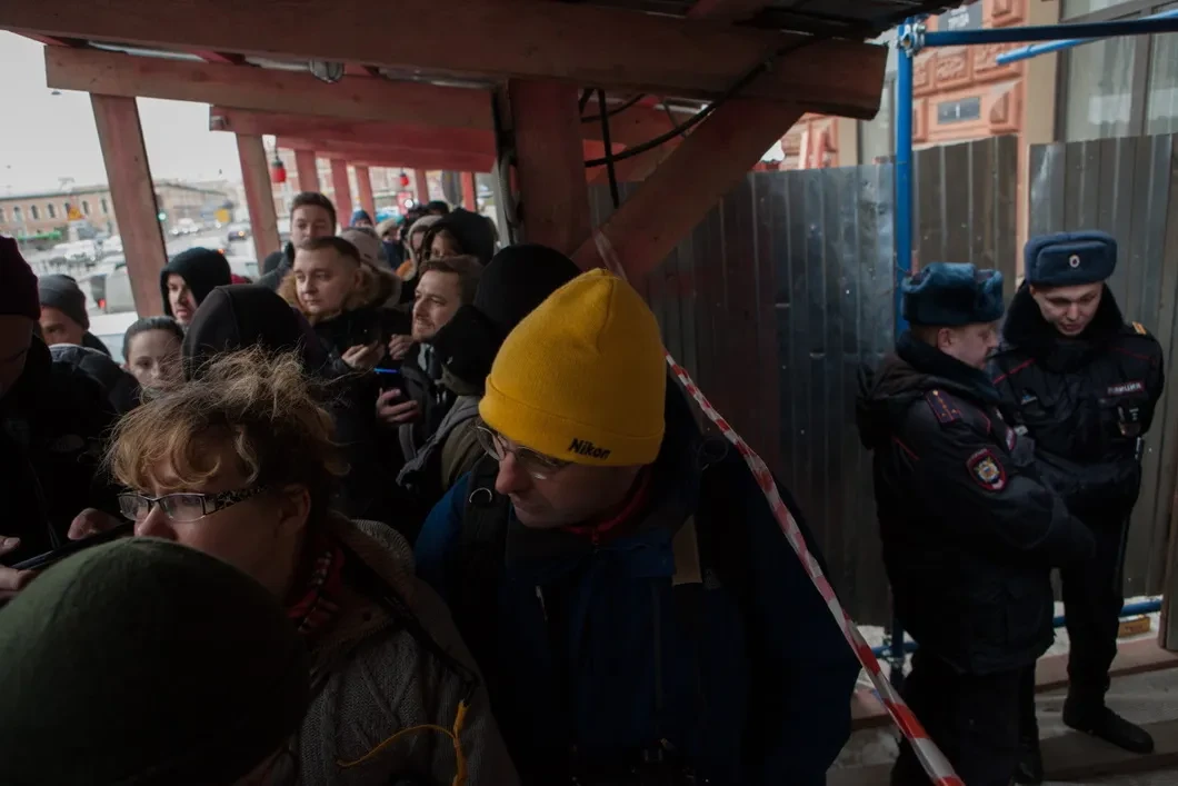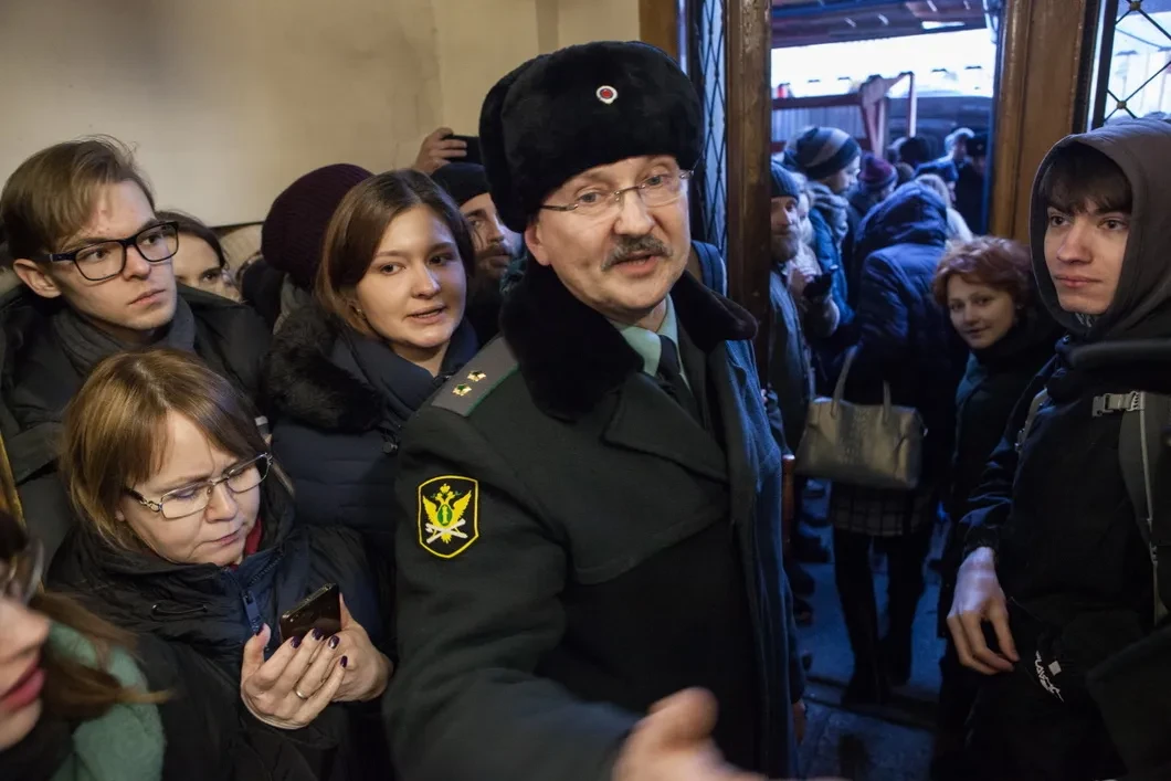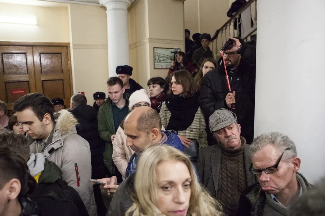 К этому времени на улице выстроились две длинные очереди, одна — пикетная, где люди сменяли друг друга с плакатами в руках, другая — на вход в здание суда, куда пропустили не более полусотни человек, включая сумевших преодолеть кордоны журналистов.
