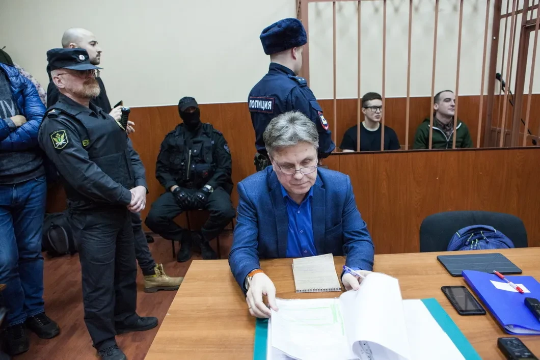 В заседании второго дня адвокат Виталий Черкасов выступил с двумя ходатайствами. Первое — о допуске журналистов — Юрий Муранов отклонил без лишних проволочек. «Вы прекрасно видите, максимально была исполнена просьба и требование о допуске прессы, зал полностью заполнен, допущены родственники и журналисты по спискам подсудимых», — отрезал председательствующий.