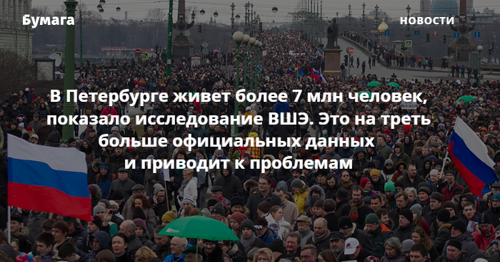 Впервые о том, что в Петербурге живет более 7 миллионов человек, сообщил глава комитета по труду и занятости Дмитрий Чернейко. По данным «Фонтанки», он ссылался на исследование ВШЭ.