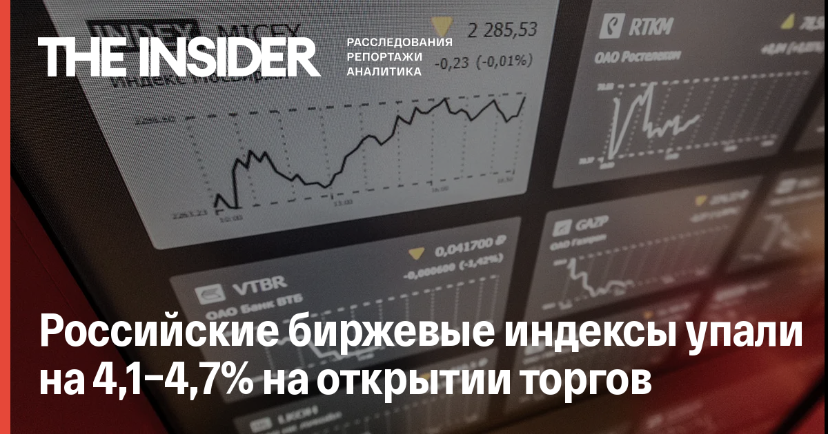 Российские биржевые индексы упали на 4,1–4,7% на открытии торгов