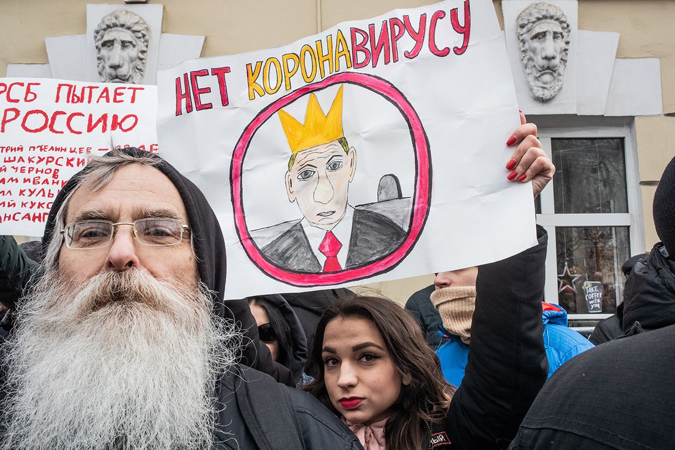 В Москве начало марша было запланировано на 14:00, однако подходить к Страстному бульвару все начали еще в районе полудня. К назначенному времени очередь людей, пытающихся пройти через рамки полицейских металлодетекторов, дотянулась до эскалаторов в метро «Чеховская». В итоге многие все еще стояли в очереди на вход даже в 14:50, когда марш вовсю уже шел. Среди них был пожилой мужчина, который пришел на марш с белым кроликом в переноске (кролика на акцию мужчина принес «за компанию», объяснил он корреспонденту «Медузы»). Переноску он со всех сторон обклеил красными стикерами «Я увольняю Путина» . Эти же стикеры мужчина раздавал людям в очереди.
