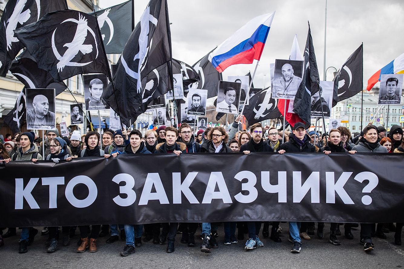 В Петербурге марш сначала пытались запретить, а потом разрешили шествие длиной 700 метров. Восьмерых участников марша задержали — включая человека с плакатом «Я знаю, кто заказал»