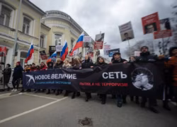 На #МаршНемцова много лозунгов с требованием освободить политзаключенных. Есть и более адресный: "ФСБ и Центр Э - главный враг в моей стане". Следите за нашей трансляцией - https://t.co/wARctJmMc4 pic.twitter.com/3YjKJzU3Fv