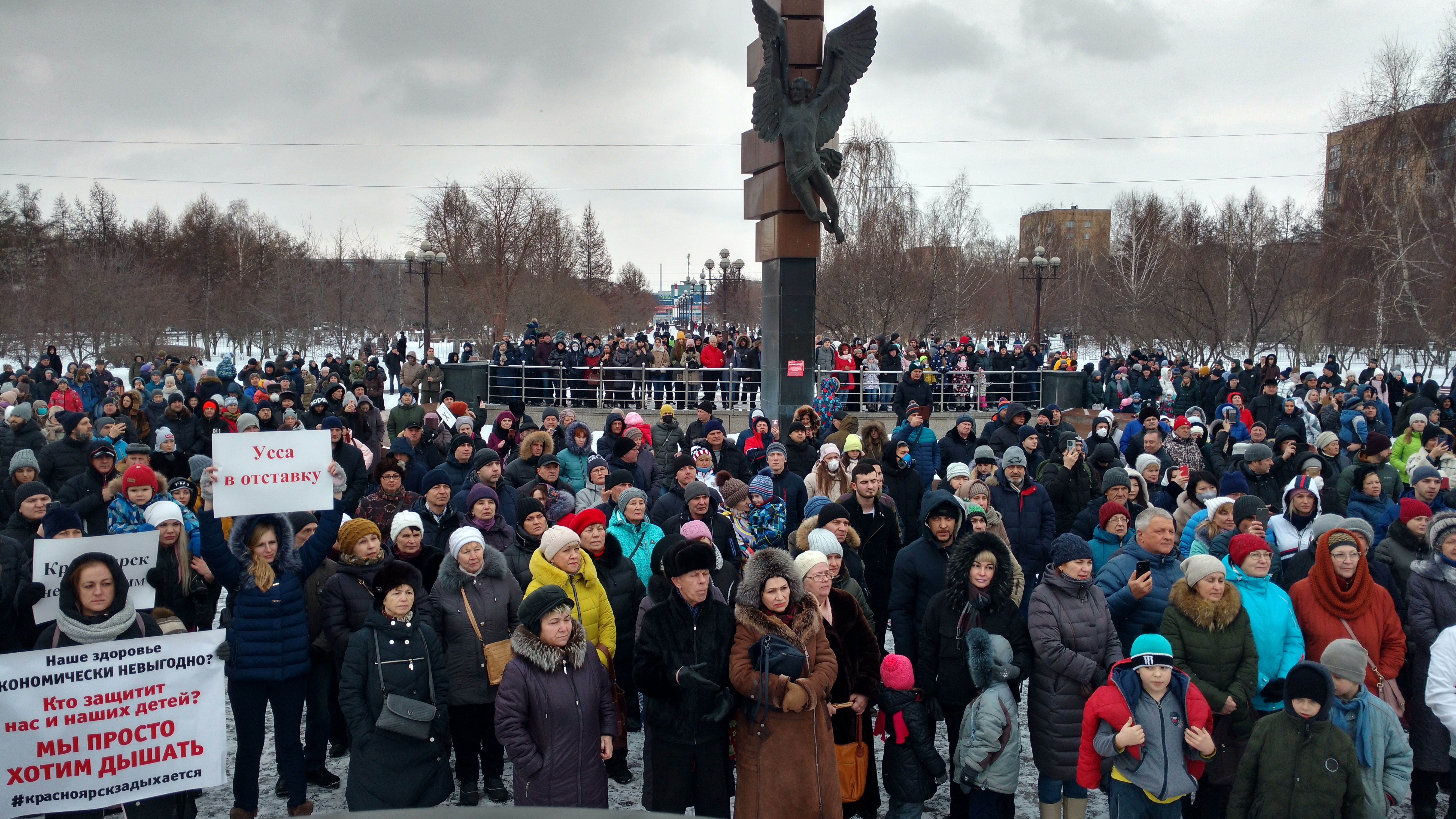 Организаторы протеста со сцены заявили, что пригласили на митинг главу региона, министра экологии и прокурора края. Но никто из чиновников не пришел. После чего жители решили начать сбор подписей за отставку Александра Усса. Другие выступающие критиковали губернатора за снижение налоговой нагрузки для главного, по их мнению, загрязнителя - красноярского алюминиевого завода.