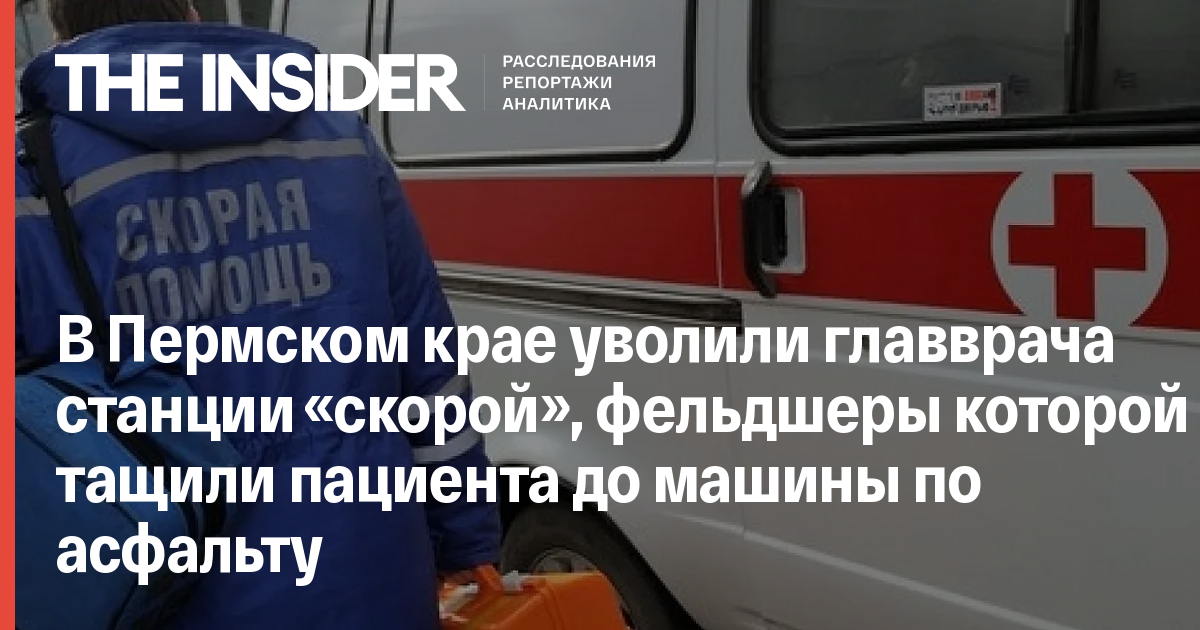 В городе Березники Пермского края уволили главного врача станции скорой помощи, фельдшеры которой тащили пациента до машины по асфальту. Об этом сообщает ТАСС со ссылкой на региональный Миндздрав.