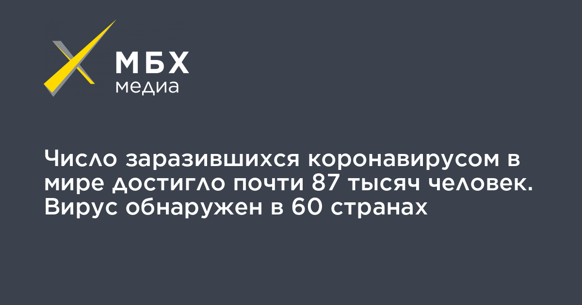 Число заразившихся коронавирусом в мире достигло почти 87 тысяч человек. Вирус обнаружен в 60 странах